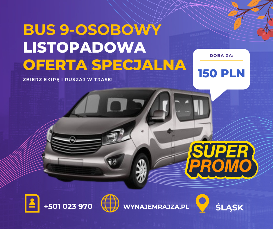 🍁 Jesienna Promocja – Wynajem Busów 9-osobowych w Rybniku już od 150 zł/dobę!